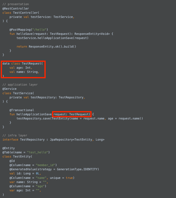 val testEntity = testRepository.save(TestEntity(name = request.name, age = request.name))