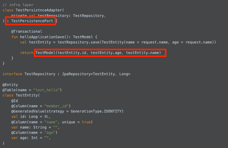 - 또한 application/domain 영역의 method는 필수적으로 application/domain 영역의 Model 클래스로 반환을 해줘야 합니다
