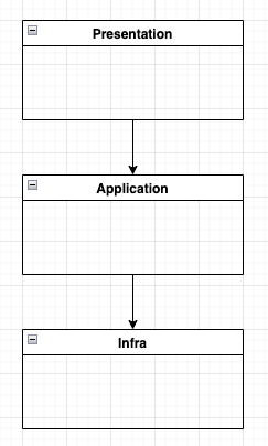 - api 호출이 이뤄지는 presentation layer, 비즈니스 로직이 있는 application layer, DB에 에터 적제 및 외부 API호출 하는 infra 영역 3가지로 나뉘게 됩니다